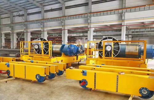 QE型雙小車橋式起重機(jī)是在QD型雙梁橋式起重機(jī)的基礎(chǔ)上,在其主梁上增加了一個副小車,并將原來的單鉤改為雙鉤。這樣就可以實(shí)現(xiàn)單鉤獨(dú)立或雙鉤同時吊運(yùn)物件,提高了吊裝效率和靈活性。下面將從以下幾個方面介紹QE型雙小車橋式起重機(jī)的特點(diǎn)與應(yīng)用。