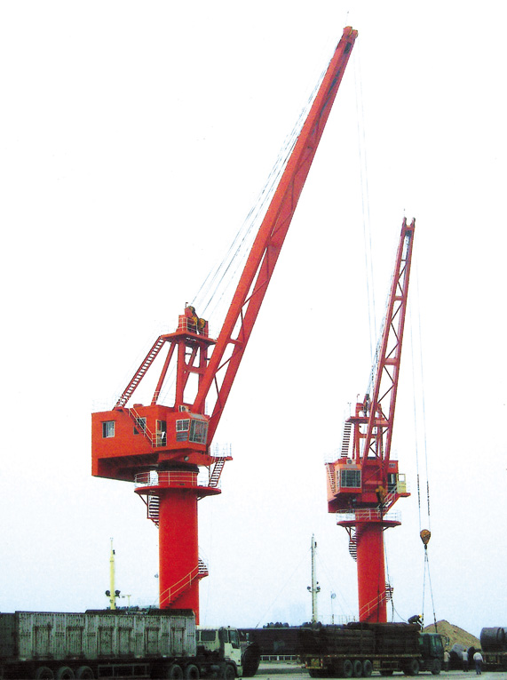 產品簡介: 吊鉤型港口起重機采用單臂架、鋼絲變幅和四點接觸球式回轉支承結構,并設置滑輪補償裝置,可使貨物近似水平移動,實現(xiàn)全幅度帶載變幅,變幅速度較快,作業(yè)效率高,可360度回轉。固定式起重機具有結構新穎,傳動平穩(wěn),效率高,操作方便,故障率低等特點。根據用戶需求,可采用變頻控制,使各機構運轉更平穩(wěn)可靠。