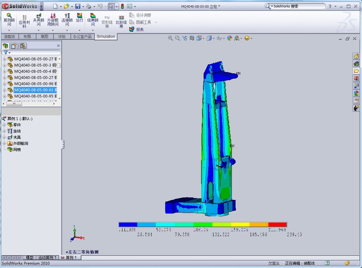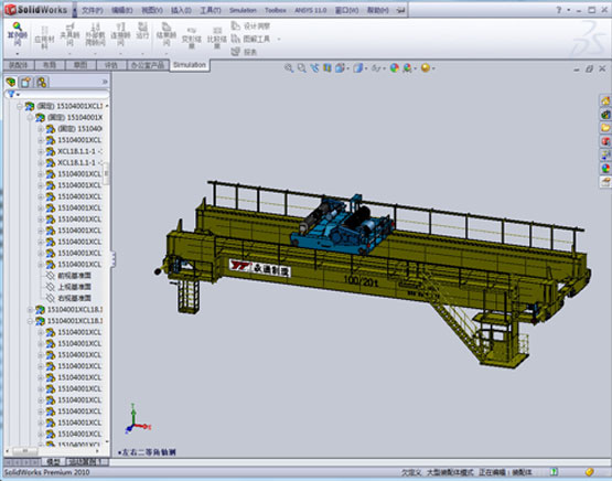 AutoCAD、SolidWarks等先進(jìn)軟件進(jìn)行設(shè)計(jì),對主要受力構(gòu)件和零部件都采用有限元分析軟件Simulaticn進(jìn)行有限元分析和優(yōu)化設(shè)計(jì),大大縮短