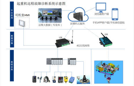 遠(yuǎn)程故障診斷系統(tǒng)主要用于全面監(jiān)控和管理起重機(jī)械的安全狀況,提供起重機(jī)的實(shí)時(shí)監(jiān)視、故障分析處理、數(shù)據(jù)采集、運(yùn)行維護(hù)、生產(chǎn)統(tǒng)計(jì)和整體設(shè)備使用狀況分析,對于統(tǒng)計(jì)和分析的結(jié)果以報(bào)表的方式輸出,能夠有效的為管理決策人員提供全面的、及時(shí)的數(shù)據(jù)輔助,同時(shí)能夠幫助維修人員監(jiān)控和維護(hù)起重機(jī)。